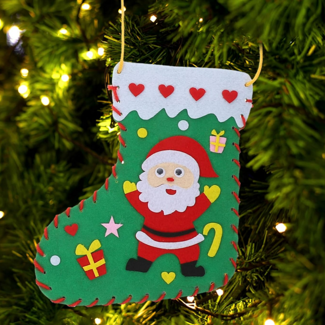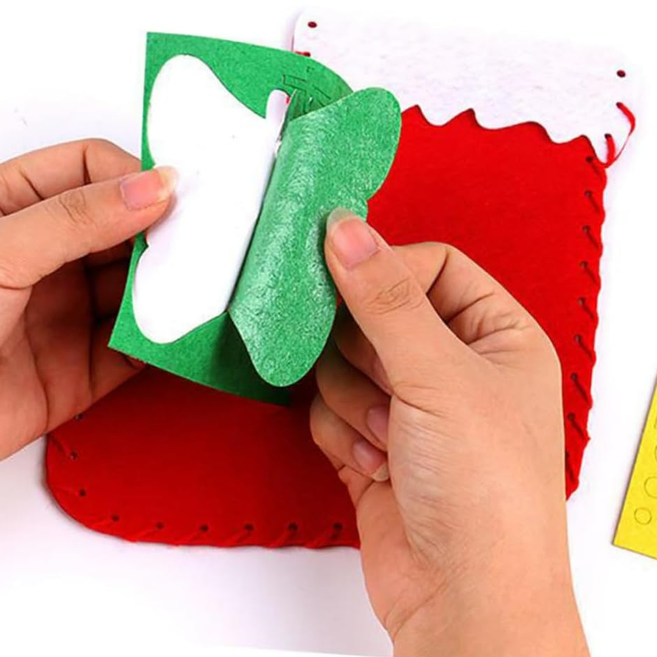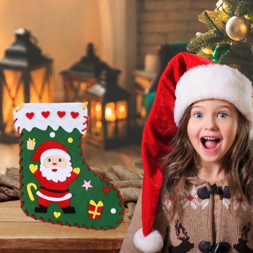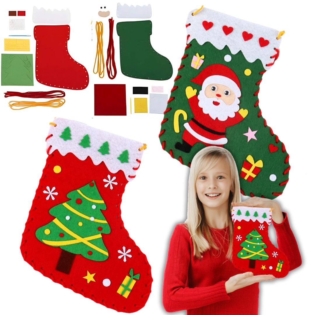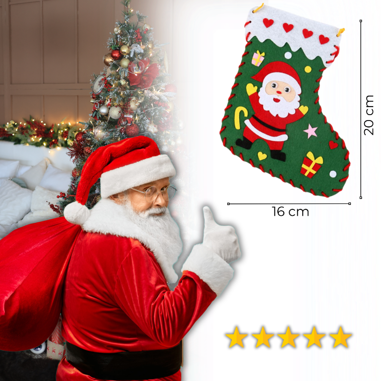 Szukasz idealnego prezentu na święta dla dzieci? Nasz zestaw do szycia świątecznych skarpet to doskonały wybór! W skład zestawu wchodzą dwie filcowe skarpety – czerwona z motywem choinki i zielona z motywem Mikołaja, wraz z samoprzylepnymi elementami dekoracyjnymi, które pozwolą na efektowną dekorację.