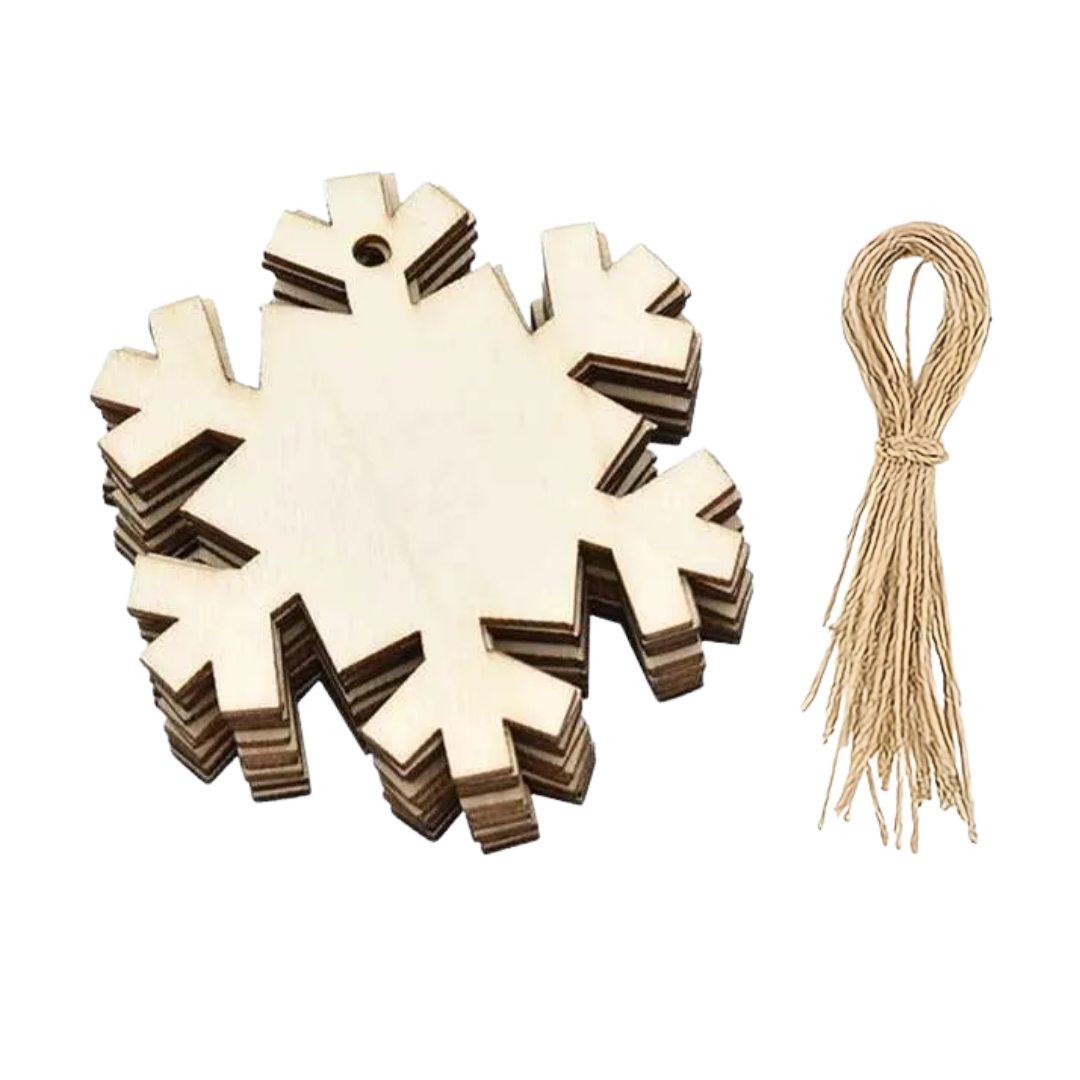 Bombka Drewniana Zawieszka Choinkowa 10 szt. Śnieżynka