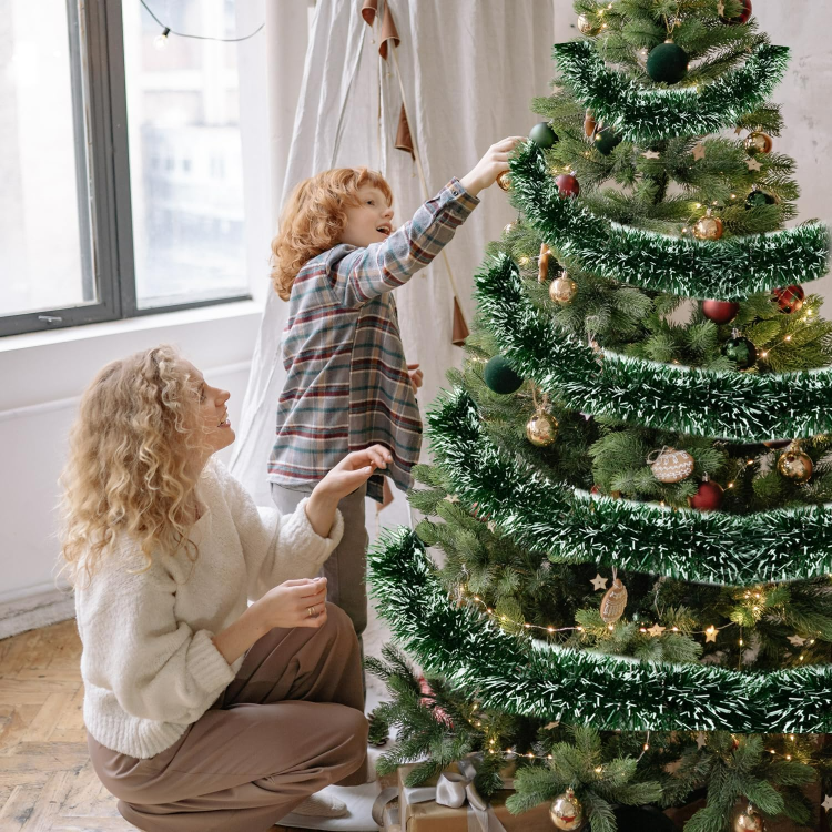 Girlanda choinkowa to klasyczna i stylowa dekoracja, która wnosi świąteczny klimat do każdego wnętrza. Dzięki swojej długości i pełnej strukturze prezentuje się pięknie na balustradach, kominkach oraz wokół drzwi, tworząc ciepłą i przytulną atmosferę. To doskonały element dekoracyjny, który doda Twojemu domowi świątecznego blasku.