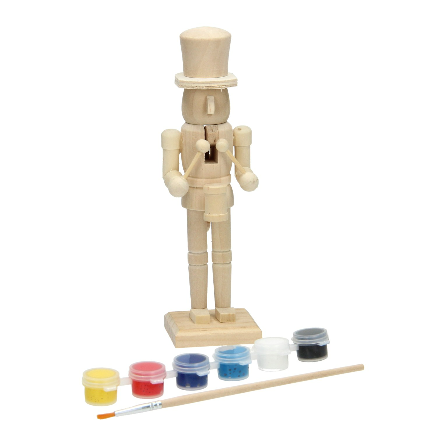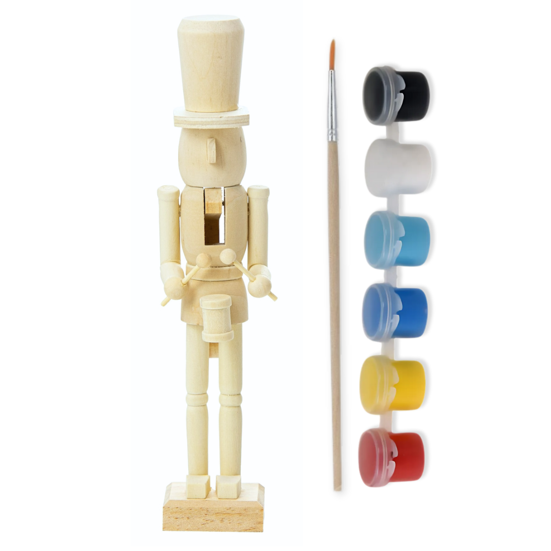 Drewniany Dziadek do Orzechów do Malowania – Zestaw z Farbami i Pędzelkiem