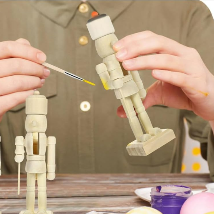 ✔️ Kompletny zestaw – zawiera drewnianą figurkę, farby akrylowe i pędzelek, gotowy do użycia od razu.