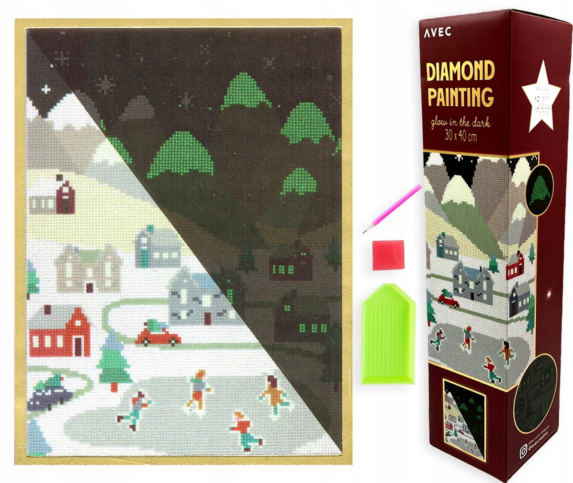 ✅ Świąteczne malowanie diamentami - WZÓR MIASTECZKA Z LODOWISKIEM.