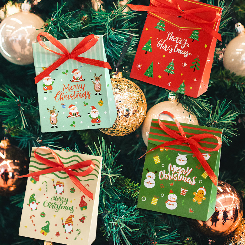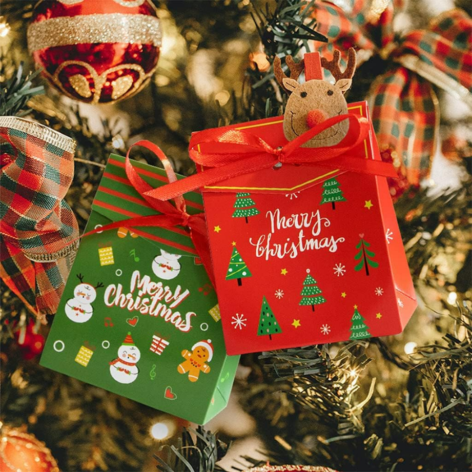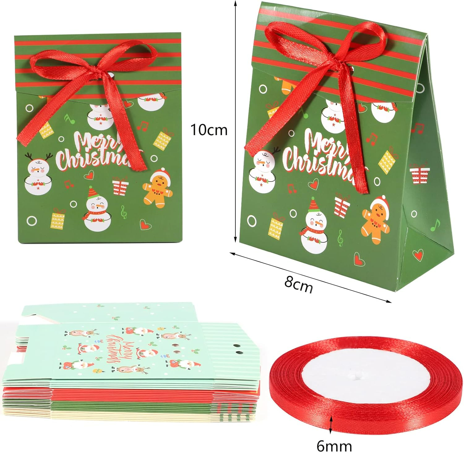 ✅ Estetyczne i funkcjonalne: czerwona wstążka i drewniane klamerki dodają elegancji, a różnorodne wzory torebek wnoszą świąteczny klimat.