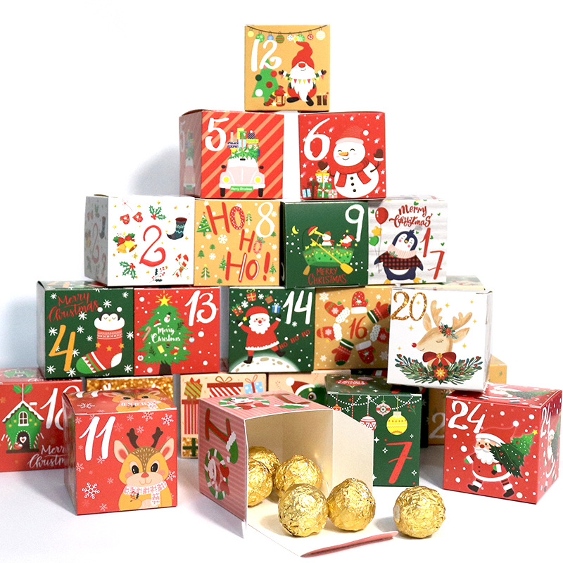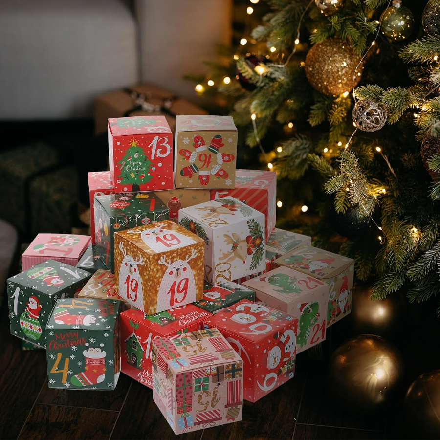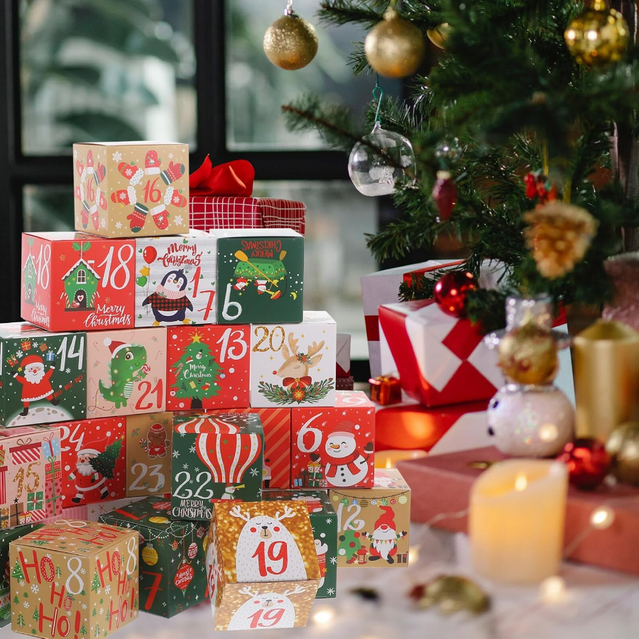 ✔️ Zestaw 24 kolorowych pudełek z nadrukiem – idealne do złożenia i wypełnienia własnoręcznie wybranymi upominkami, co pozwoli Ci stworzyć coś naprawdę unikalnego.