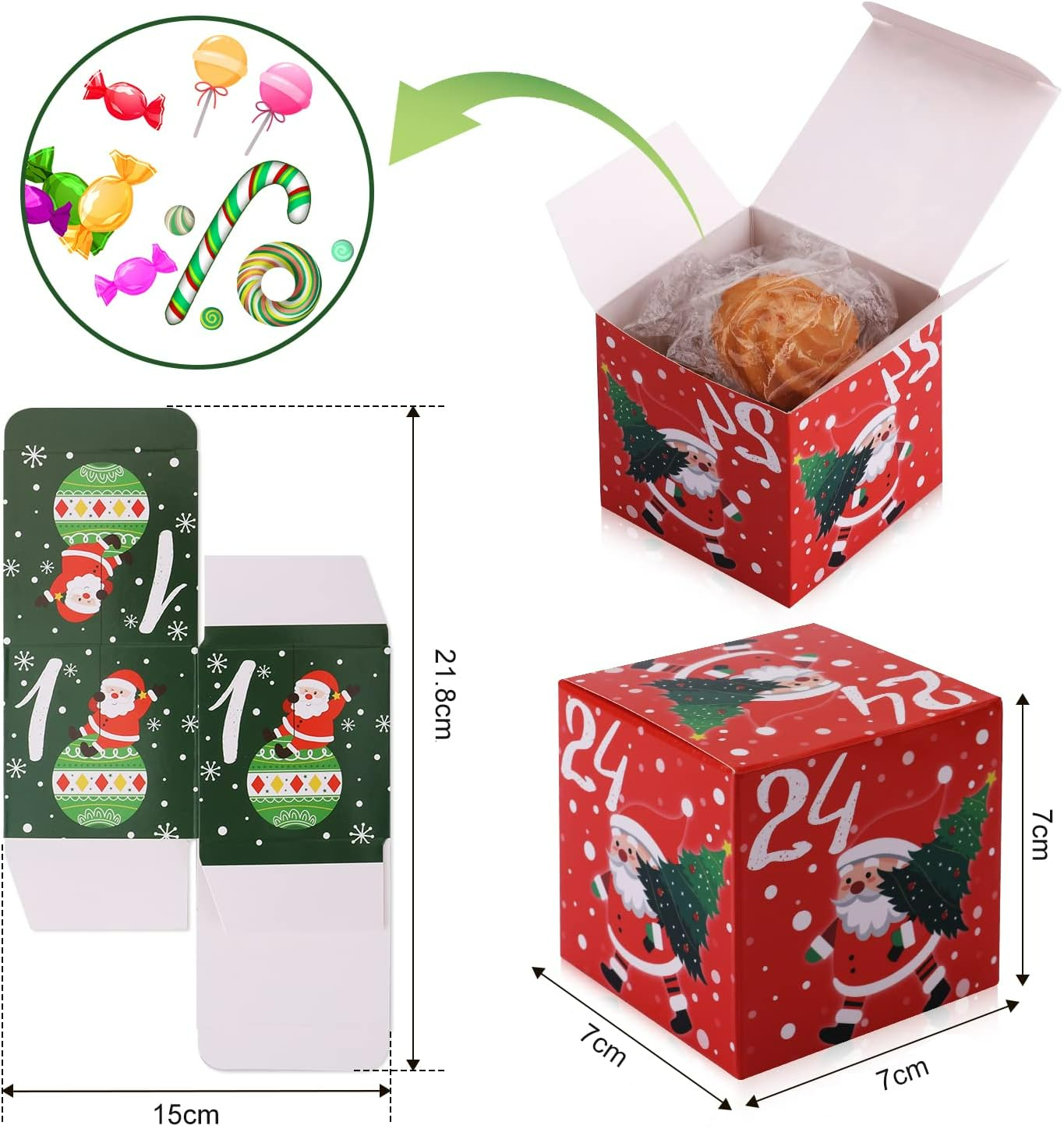 ⭐24 papierowe pudełeczka z świątecznym nadrukiem o wymiarach 7x7x7 cm