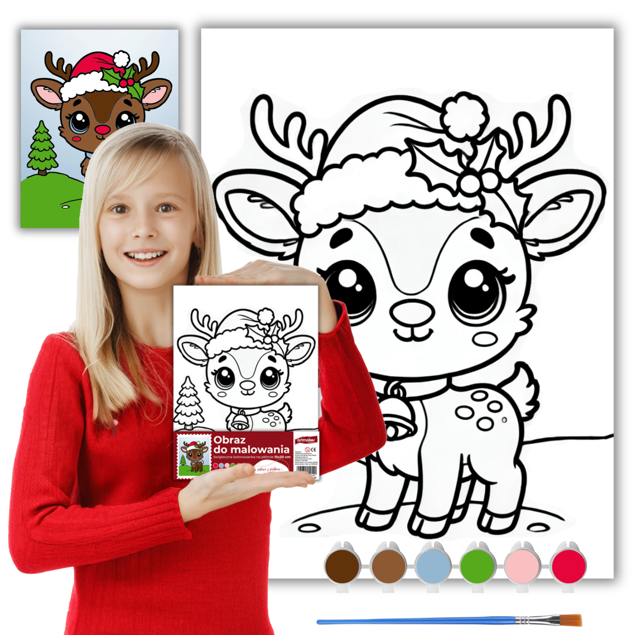 ✔️ Płótno z nadrukiem Renifera – gotowe do pomalowania, wprowadzi świąteczną atmosferę do Twojego domu.