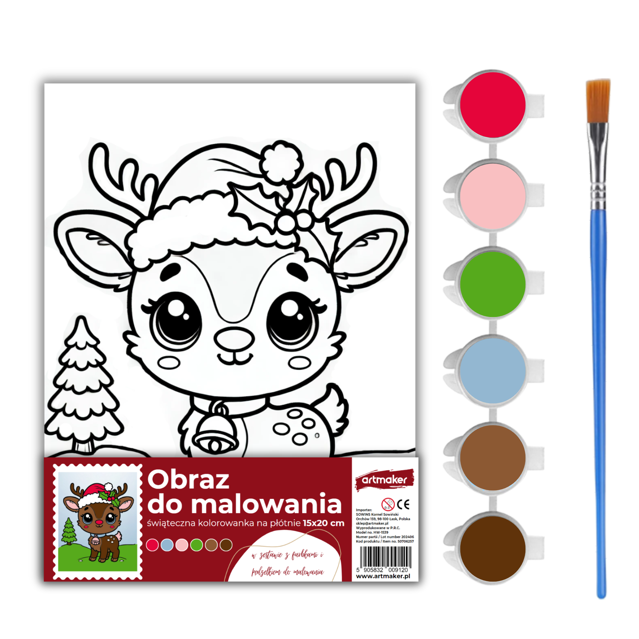 Płótno malarskie z nadrukiem świątecznym przedstawiającym Reniferka to doskonały pomysł na prezent, który zachwyci zarówno dzieci, jak i dorosłych. Zestaw zawiera 6 farb akrylowych oraz pędzelek, dzięki czemu jest gotowy do malowania. Wymiary płótna 15x20 cm oraz grubość 1,5 cm sprawiają, że jest to idealny rozmiar na twórczą zabawę i stworzenie wyjątkowej dekoracji świątecznej.
