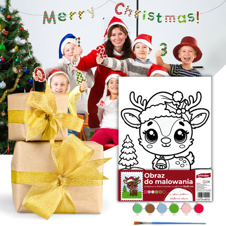 Pozwól sobie lub bliskim na kreatywną zabawę z zestawem malarskim ze świątecznym nadrukiem. To idealny pomysł na świąteczny prezent, który rozweseli i zainspiruje każdego artystę!