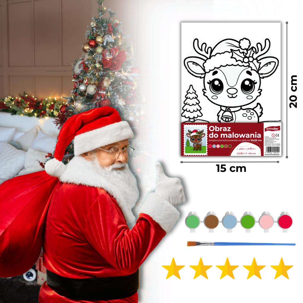 Ten zestaw malarski to idealny pomysł na prezent, który pobudza kreatywność i wprowadza radość do świątecznego okresu. Płótno z nadrukiem Renifera to doskonała zabawa dla dzieci i dorosłych – tworzenie własnej wersji Renifera sprawi, że świąteczne dekoracje staną się jeszcze bardziej osobiste. To świetny sposób na spędzenie czasu z rodziną, rozwijanie twórczych umiejętności i stworzenie unikalnych ozdób na święta.