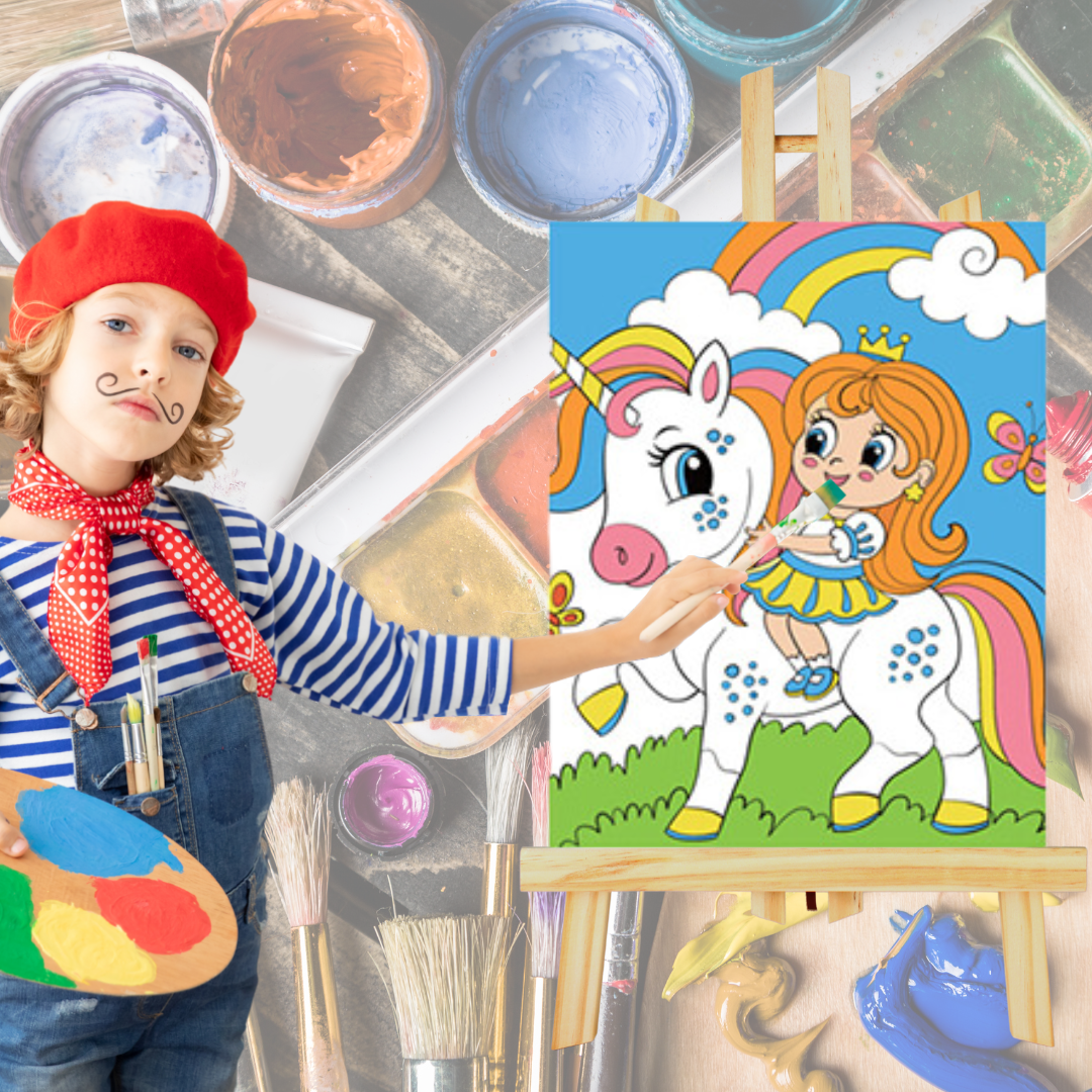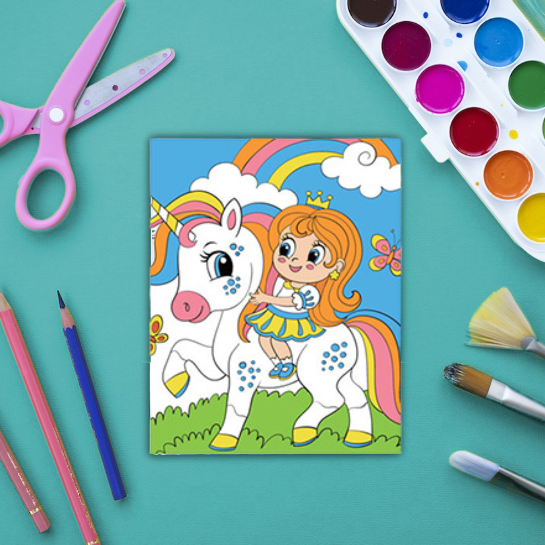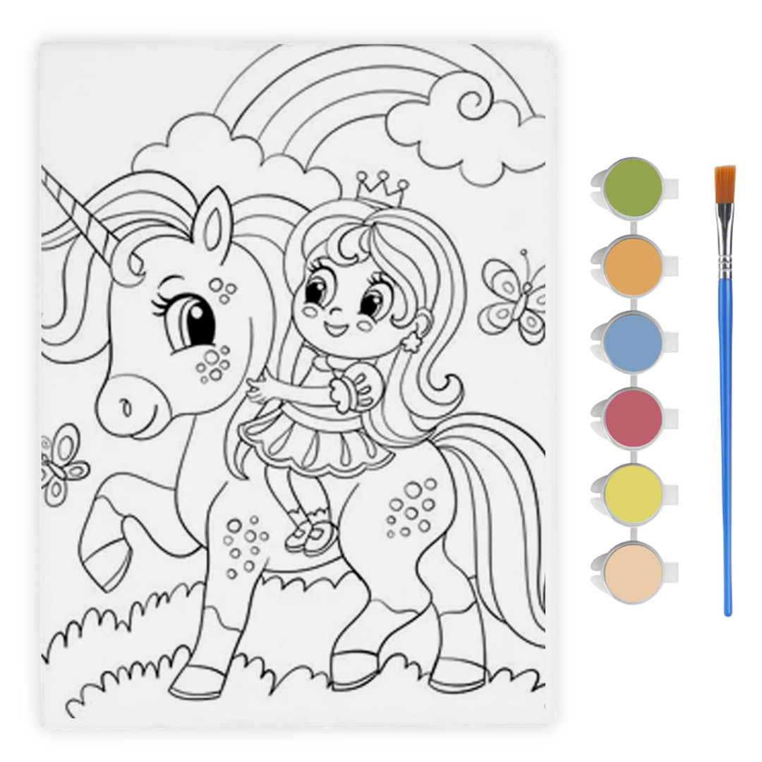 Zaprezentuj swoje umiejętności malarskie z naszym obrazkiem do kolorowania po numerach, który przedstawia słodkiej księżniczki z jednorożcem. Zestaw zawiera płótno o wymiarach 30 x 40 x 1,5 cm, pędzel oraz 6 starannie dobranych farb akrylowych. Dzięki precyzyjnie określonym numerom i kolorom, nawet początkujący artyści mogą stworzyć piękne dzieło sztuki.