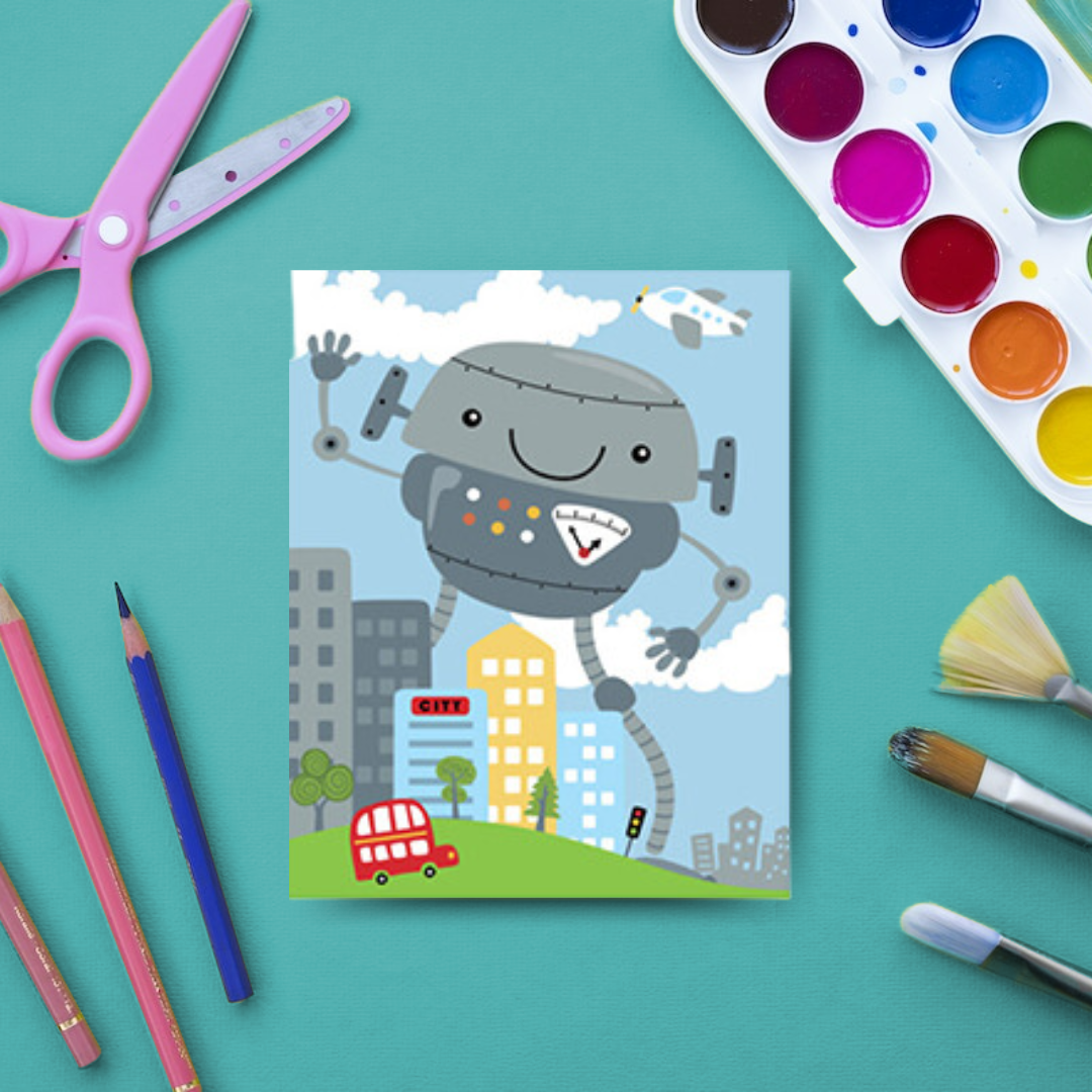 Zaprezentuj swoje umiejętności malarskie z naszym obrazkiem do kolorowania po numerach, który przedstawia robota. Zestaw zawiera płótno o wymiarach 30 x 40 x 1,5 cm, pędzel oraz 6 starannie dobranych farb akrylowych. Dzięki precyzyjnie określonym numerom i kolorom, nawet początkujący artyści mogą stworzyć piękne dzieło sztuki.