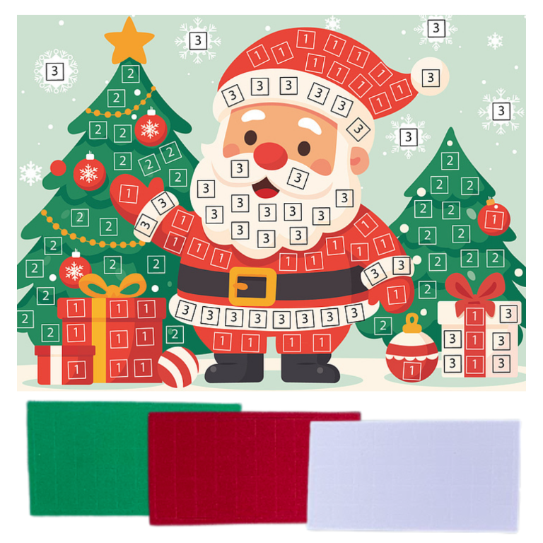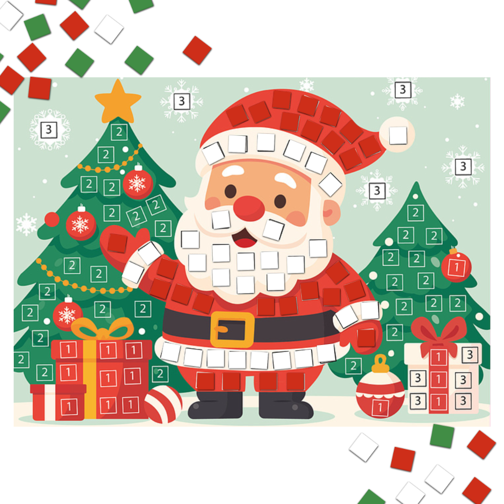 Szukasz kreatywnego i angażującego prezentu dla dziecka? Nasza kreatywna wyklejanka mozaika piankowa z motywem Mikołaja to doskonały wybór! Zestaw zawiera kolorowe elementy z miękkiej pianki EVA, które dzieci przyklejają na odpowiednie miejsca według wzoru. To świetna zabawa rozwijająca precyzję, cierpliwość i wyobraźnię, a przy tym – gwarancja radości i świątecznej atmosfery! Doskonale sprawdzi się jako prezent na Mikołajki, świąteczną wigilię klasową lub element paczki dla dzieci w przedszkolu.