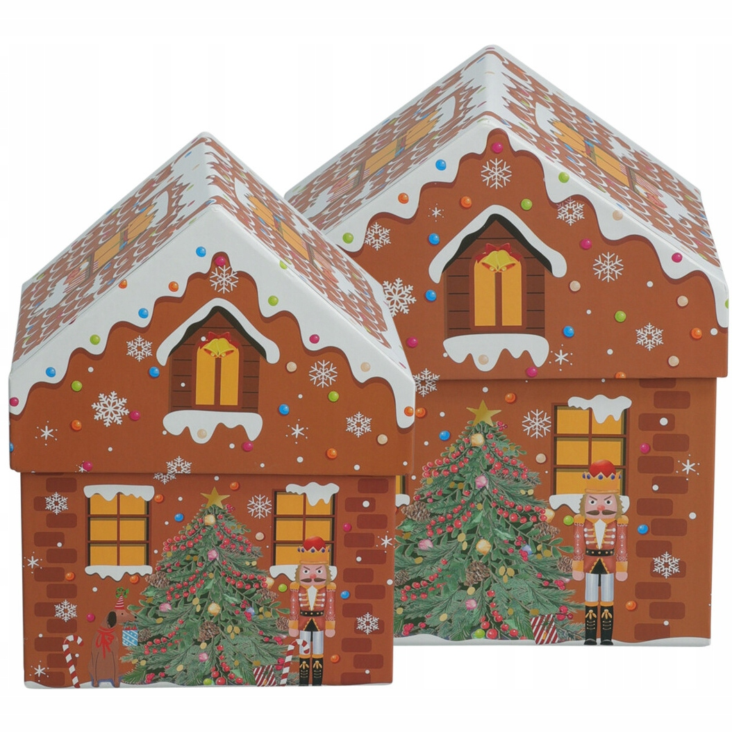 Zestaw pudełek dekoracyjnych piernikowa chatka motyw świąteczny