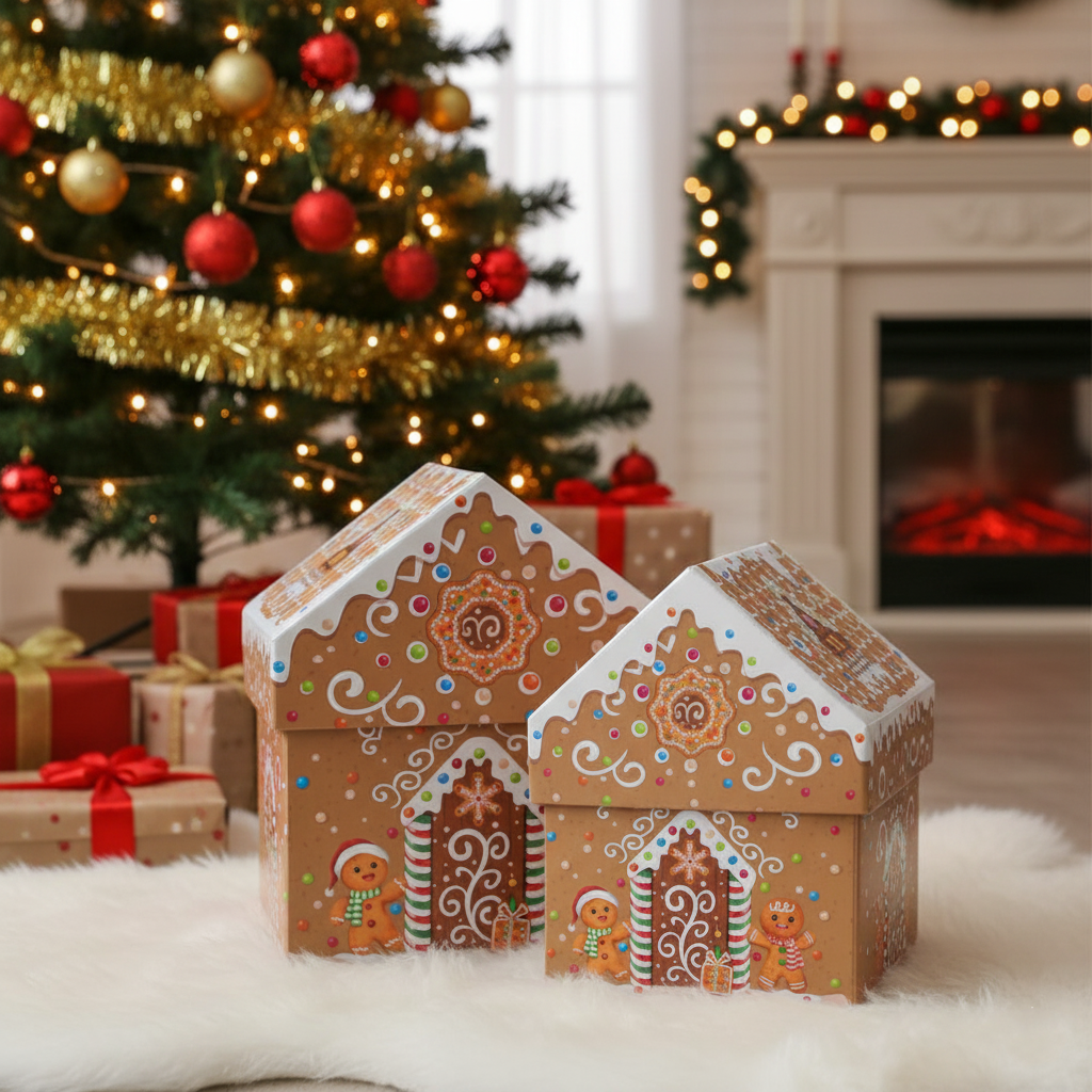 Zestaw pudełek dekoracyjnych piernikowa chatka motyw świąteczny