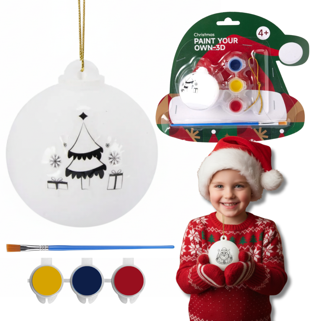 Zestaw bombek do samodzielnego pomalowania to świetna baza do stworzenia kreatywnego prezentu! W naszym sklepie znajdziesz wiele innych produktów kreatywnych, takich jak zawieszki, kolorowanki czy zestawy plastyczne, które możesz połączyć w wyjątkowy, świąteczny zestaw prezentowy. Tworząc własny zestaw świąteczny, inwestujesz w rozwój i kreatywność dziecka, dając mu narzędzia do twórczego spędzania czasu. To nie tylko prezent – to wartościowa inwestycja w wyobraźnię, rozwój manualny i radość z tworzenia!