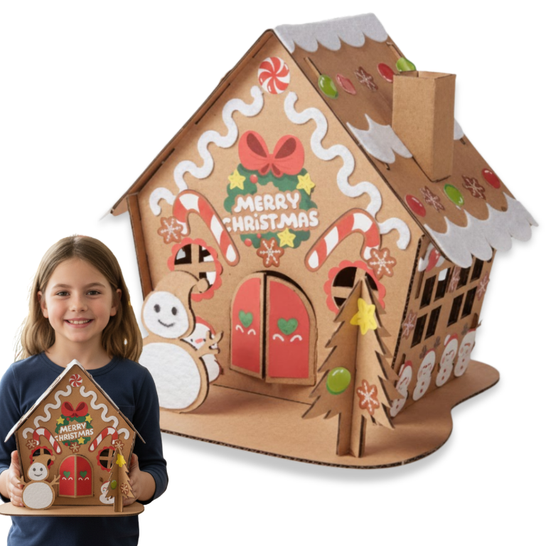 Szukasz wyjątkowego pomysłu na świąteczny prezent dla dziecka? Nasz świąteczny domek do samodzielnego złożenia i ozdobienia to idealny wybór! W zestawie znajduje się kartonowa baza, która pozwala złożyć domek o wymiarach 18×17×16 cm oraz zestaw kolorowych naklejek, dzięki którym każde dziecko może stworzyć swoją własną piernikową chatkę. To doskonała zabawa rozwijająca kreatywność, cierpliwość i zdolności manualne najmłodszych.