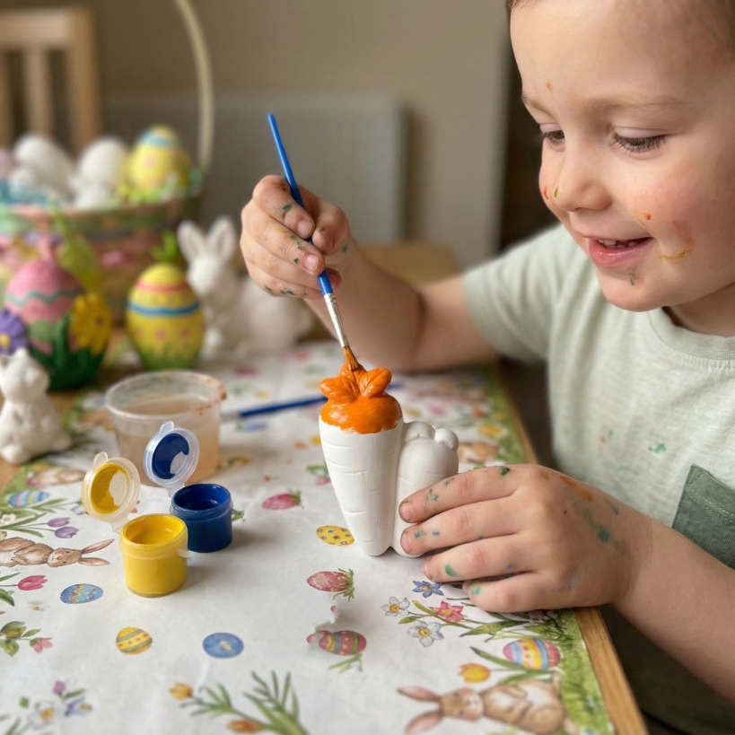 Ta figurka wielkanocna do malowania w kształcie marchewek to kreatywny zestaw, który pozwala dzieciom rozwijać wyobraźnię oraz zdolności manualne. Gipsowa figurka wielkanocna 7 cm została przygotowana z myślą o samodzielnym ozdabianiu przy użyciu dołączonych farb i pędzelka. Zestaw sprawdzi się zarówno podczas rodzinnej zabawy w domu, jak i jako zestaw kreatywny na Wielkanoc dla dzieci w szkołach, przedszkolach czy podczas warsztatów plastycznych. To praktyczna propozycja dla osób szukających pomysłu na wielkanocne rękodzieło dla dzieci oraz twórczą aktywność związaną ze świąteczną dekoracją.
